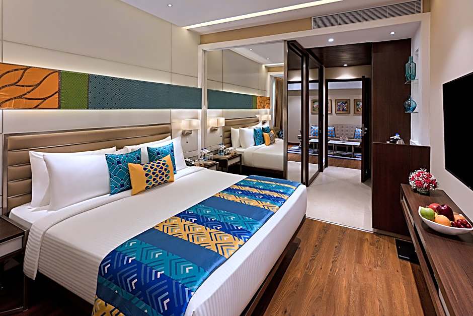 The spacious suite offers air conditioning, a mini-bar, a tea and coffee maker, a seating area and a flat-screen TV with satellite channels.
